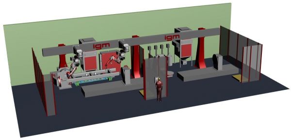 Schweißroboter-Anlage 1: 2 Zellen, 2 Roboter