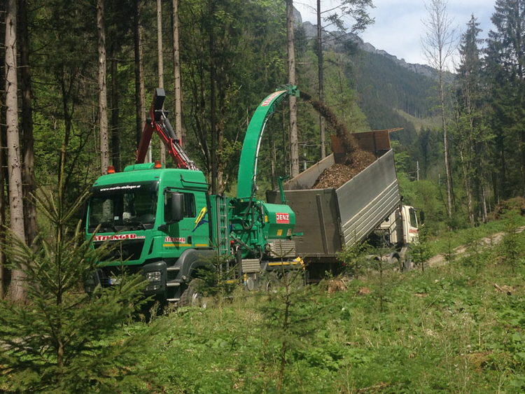 Die diversen Hackgutgrößen können mit unterschiedlichen Siebkörben hergestellt werden, oder bei stark verunreinigtem Material werden diese mit einer mobilen Siebanlage getrennt.